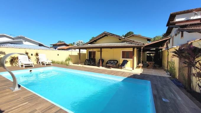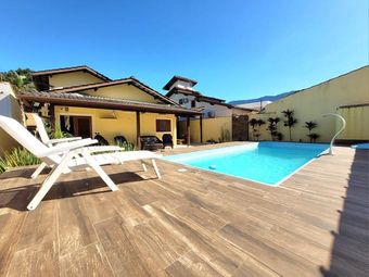 Excelente casa no Condomínio Mar Verde, Praia Mococa, Caraguatatuba/SP. 237M² de área construída. 3 dormitórios amplos, sendo 1 suíte, sala de estar e jantar amplas com vista para o jardim, cozinha americana, área de serviço, 3 banheiros, espaço gourmet completa com churrasqueira e fogão á lenha, além de uma maravilhosa piscina privativa. 3 vagas de garagem. Salas com pé direito duplo, além de cômodos amplos, arejados e iluminados. Localizada em condomínio do litoral norte de São Paulo, com total segurança e lazer completo. Condomínio conta com praças, quadras poliesportivas, playgrounds, trilhas, vigilância 24 horas com rondas condominiais, portaria 24 horas, fácil acesso ao mar e demais praias do litoral norte de SP. Estuda permuta de menor valor! Disponível para visitas, agende já com um de nossos consultores! Consulte-nos sobre a disponibilidade e as informações do imóvel anunciado. Valores sujeitos a alteração. Ref. 3144.